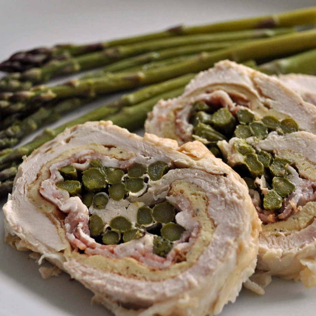 صدر دجاج رول محشي بالهليون ولحم بقري مدخن وموتزاريلا